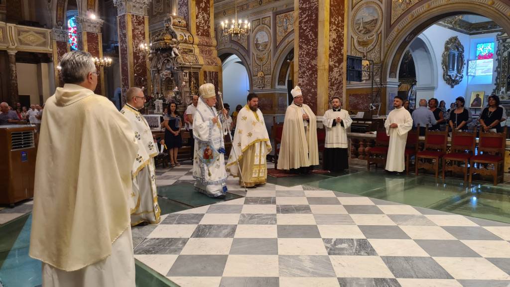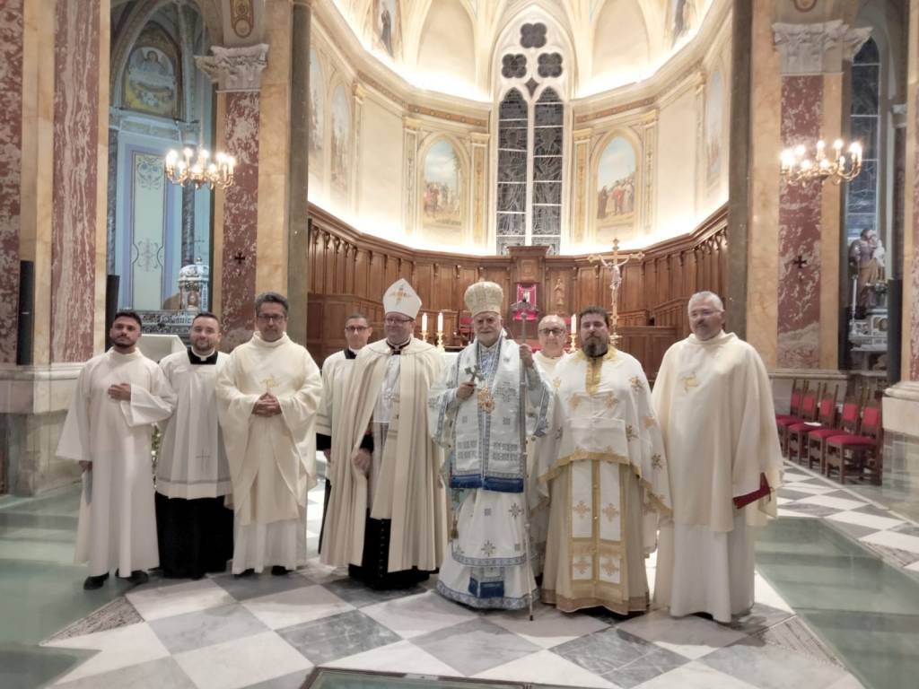 La celebrazione nella Cattedrale di Maria Santissima Achiropita della Divina Liturgia di S. Giovanni Crisostono presieduta da S. E. Mons. Donato Oliverio Eparca di Lungro, ha caratterizzato la vigilia della Solennità di Maria SS. Assunta in cielo – SS. Achiropita. Un momento intriso di quello spirito sinodale che sta oggi guidando la Chiesa e che ha rinnovato, come sottolineato da S. E l’Arcivescovo Mons. Maurizio Aloise, l’impegno a consolidare il dialogo e la collaborazione tra l’Eparchia di Lungro e l’Arcidiocesi di Rossano-Cariati, sia per un comune percorso di fede e sia per realizzare l’ambizioso progetto sinodale di un cammino insieme per costruire un polo di riferimento ecumenico di religiosità latina e greco-bizantina mediterranea. Mons. Aloise ha anche tracciato il percorso storico della Chiesa diocesana che è stata di liturgia, rito, lingua, Vescovo greco-bizantini, gerarchicamente dipendente dal Patriarca di Bisanzio, per circa mille anni, fino al 1460, quando viene latinizzata. Essa è patria di tre Santi, riconosciuti anche dalle Chiese greco-bizantine: Nilo (tra l’altro, fondatore dei Monasteri di S. Adriano e di S. Maria di Grottaferrata), Bartolomeo e Theodora e il territorio di Rossano, nell’Alto Medioevo, è famoso come Aghion Oros, la Montagna Santa, sede di Laure rupestri e di Monasteri, tra i quali l’arcinoto S. Maria la Nuova Odigitria del Patir, centri ascetici e culturali di importanza nazionale e oltre per i loro Scriptoria, officinae librorum, e le ricche Biblioteche. Mentre non sfugge che la Chiesa diocesana conserva uno de più antichi Evangelari del mondo, radice è fonte della nostra comune fede cristiana, cimelio insigne di spiritualità e di arte raffinata, di valore inestimabile, il Codex Purpureus Rossanensis, patrimonio Unesco dell’umanità. Un passato che affonda ancora le sue profonde radici in questi tempi moderni e che deve fungere da stimolo per il futuro. Proprio per questo S. E. l’Arcivescovo di Rossano Cariati, “con l’affetto fraterno che ci lega in Cristo, e lega le due Comunità del popolo arbresh e del popolo Rossanese da oltre quattro secoli” ha invitato Mons. Oliverio, le Comunità religiose di Lungro e di Rossano-Cariati, le Istituzioni civili delle rispettive città, le Associazioni culturali a riprendere il cammino innovativo avviato in passato. “Costruire la speranza concreta, ha esortato Mons. Aloise, promuovere dalle nostre periferie il dialogo collaborativo, la solidarietà, la pace, e al fine anche di scuotere le coscienze alla partecipazione responsabile e quindi contribuire a migliorare e salvare l’umanità in crisi. La Divina liturgia bizantina che ci apprestiamo a celebrare non ci trovi spettatori distratti o presi dall’abitudine, incapaci così di stupirci per il significato e il mistero cui siamo ricondotti: è la certezza profonda che abita nel profondo del cuore del credente di sapere che ogni tenebra non ha e non può avere l’ultima parola sulla vita del discepolo di Cristo. La Tutta Santa Madre di Dio Achiropita, Maria Santissima, l’Odegitria e che ci conduce sulla via, che è il suo stesso Figlio Gesù Cristo, ci accompagni con la sua protezione oggi e sempre”.