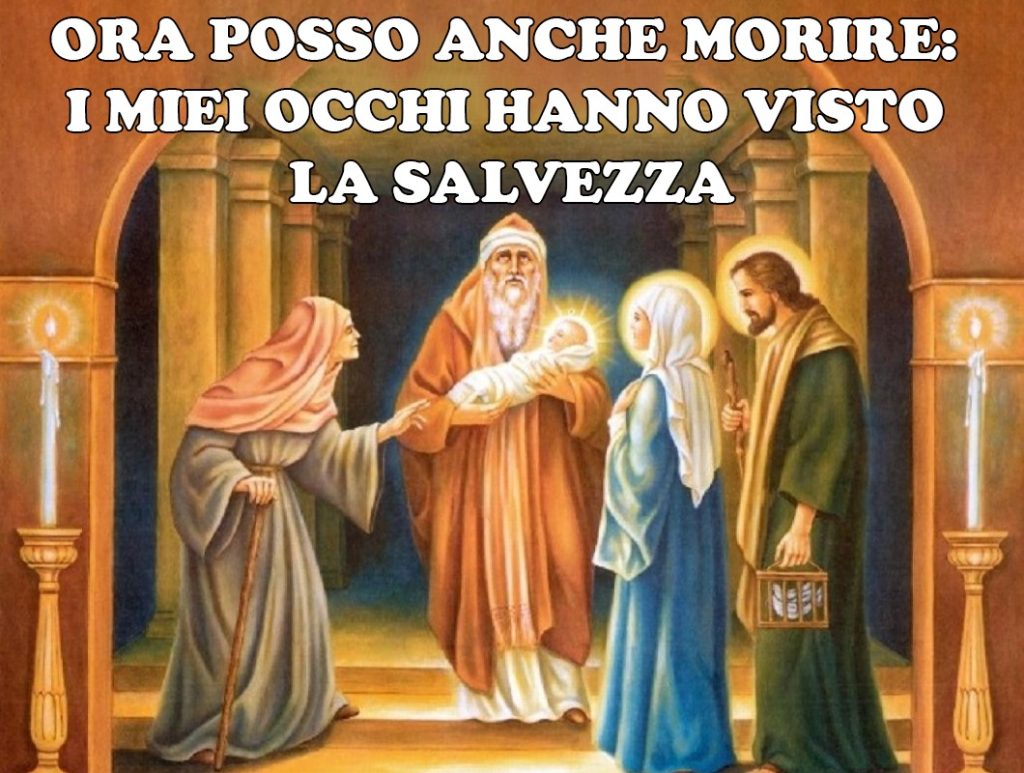 i Farisei, i Sadducèi, i Levìti, ed i grandi Dottori della Legge? Ma lo Spirito Santo, nei suoi imperscrutabili disegni, “che soffia dove vuole” (Gv 3, 8). aveva, misteriosamente partecipato, questo “Lieto Annunzio”, unicamente a questo povero uomo, Simeòne, uomo semplice, ma “giusto” e pietoso, che aspettava la consolazione di Israele” (Lc 1, 25), preannunciandogli, che non avrebbe visto la morte, senza prima aver veduto il Cristo del Signore” (v 26). Oggi, “mosso dallo Spirito”, è salito al Tempio, è andato incontro Maria e Giuseppe, ha preso il Bambino in braccio, e benedisse Dio dicendo: “Ora puoi lasciare o Signore, che il tuo servo, vada in pace, secondo la tua parola. Come a dire: ora posso anche morire, perché i miei occhi hanno visto la tua salvezza…! (vv 29-30). Anche nelle nostre pratiche religiose quotidiane, purtroppo, sono poche le persone che si “accorgono” della Presenza di Gesù in Chiesa. Simeone Lo accoglie come promessa, e realtà di Salvezza mentre la Profetessa Anna, lo saluta con la sua silenziosa preghiera. Queste due persone: semplici e giuste, ci sono di grande esempio: Ci insegnano a vivere le nostre giornate, con costanza e impegno. Mai perdere la Fiducia, di vedere realizzate anche per noi. Le Promesse di Dio. Tuttavia, senza scoraggiarci, perché Gesù: è la nostra Luce “per illuminare le genti” (Per noi Cristiani, oggi, è proprio, la cosiddetta Festa della Candelòra), pertanto, abbandoniamoci e fidiamoci dello Spirito Santo, che ci darà la forza, per superare ogni incomprensione, ed essere ammessi, anche noi un giorno, nel Tempio della sua Gloria, per intercessione della Vergine madre. Auguro a tutti di cuore, una serena e Santa Festa della Candelòra.