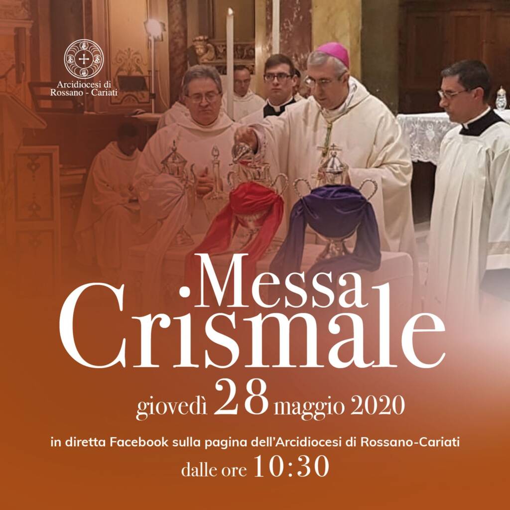 L’Arcidiocesi di Rossano-Cariati, si prepara a vivere alcuni appuntamenti ecclesiali molto importanti e significativi. Il primo è fissato per mercoledì 27 maggio alle ore 21,00, in Cattedrale. Ci ritroveremo per un momento di preghiera e ringraziamento, presieduto da S. E. l’Arcivescovo Mons. Giuseppe Satriano, nel decimo sabato dell’Achiropita. È possibile seguire questo evento attraverso la diretta facebook sulla pagina dell’Arcidiocesi di Rossano-Cariati. Il secondo appuntamento è la Messa Crismale, che si celebrerà giovedì 28 maggio, alle ore 10:30, in Cattedrale e che potrà essere seguita, sempre in diretta facebook sulla pagina della Arcidiocesi. Presiede l’Eucarestia Mons. Giuseppe Satriano e vi partecipano i sacerdoti, i diaconi, i seminaristi, una delegazione di religiose e, in rappresentanza dei fedeli laici, i membri del Consiglio Pastorale Diocesano. Cuore della celebrazione è la benedizione degli Oli Santi: Crisma, Catecumeni, Infermi. Dopo l’omelia, i sacerdoti rinnoveranno le promesse sacerdotali. Terzo appuntamento: la Veglia Diocesana di Pentecoste. Preparata da un settenario di preghiera e riflessione, la Veglia si terrà sabato 30 maggio 2020, alle ore 20:30, nella la parrocchia Maria Madre della Chiesa. Presieduta dall’Arcivescovo, vedrà la partecipazione di tutte le realtà ecclesiali presenti in Diocesi (sacerdoti, religiose, laici). Coordinata dall’Ufficio Missionario e Liturgico, nella Veglia verranno presentate le testimonianze degli Uffici Diocesani di Pastorale, che sono stati invitati a rispondere alla domanda: “Che cosa questo tempo di Pandemia ha detto alla nostra realtà ecclesiale?”. Questo evento, oltre che dalla pagina Facebook dell’Arcidiocesi di Rossano-Cariati, sarà anche trasmesso in diretta televisiva dall’emittente Tele A 1, visibile su canale 72 digitale terrestre.