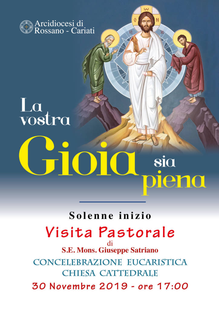 Sabato 30 novembre 2019, alle ore 17:00, con la celebrazione eucaristica vigiliare della prima domenica di Avvento, nella Chiesa Cattedrale Maria SS. Achiropita, avrà inizio la Visita Pastorale di S. E. l’Arcivescovo Mons. Giuseppe Satriano. Trascorsi cinque anni dal suo ingresso in diocesi, nei quali Mons. Satriano ha avuto modo di conoscere a fondo il territorio, cogliendone le sfide pastorali più importanti e impiantando un impegnativo progetto pastorale, ha scelto di vivere la sua prima Visita Pastorale. Questa ha avuto un congruo tempo di preparazione, caratterizzato da un confronto costante con i Consigli diocesani e da un ascolto attento dei fedeli. Nel decreto di indizione, emanato in occasione della Festa Diocesana dell’Achiropita, lo scorso 12 agosto, l’Arcivescovo ha ben espresso i sentimenti con i quali si accinge a visitare tutte le comunità parrocchiali della Diocesi: “Vengo tra voi col desiderio di sperimentare un incontro autentico, ricco di condivisione e ascolto, in una ferialità che riempiremo di quella gioia che ci viene donata dalla parola del Signore, dalla fraternità che nasce dall’Eucaristia”. “La visita del vescovo non è solo un momento di verifica del cammino fatto – ha scritto il presule – ma anche un’opportunità di grazia in cui contattare la misericordia del Signore che, attraverso il pastore della Chiesa locale, visita e benedice le nostre famiglie, le nostre comunità, i nostri vissuti, per riempirli della gioia del Risorto, nella sua pienezza di vita e ci conferma nella fede”. A conclusione della concelebrazione eucaristica, l’Arcivescovo consegnerà a tutte le parrocchie una icona della Trasfigurazione, una lampada e una preghiera, che accompagneranno le comunità per tutto il tempo della Visita Pastorale.