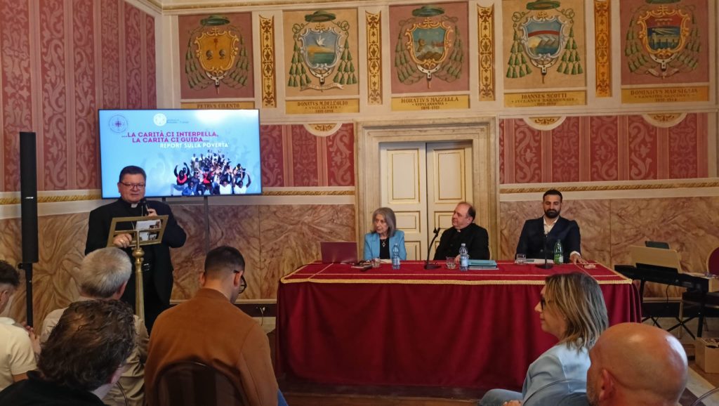 “La povertà è una realtà che deve interpellarci, perché la vera questione è il pericolo che la povertà non ci scandalizzi più”. E’ questo l’ammonimento e la preoccupazione lanciata da Don Marco Paniello Direttore di Caritas italiana intervenuto alla presentazione del Report sulla povertà 2024 presentato questa mattina dalla Caritas diocesana. In una Sala degli Stemmi arricchita alla presenza anche delle scolaresche dell’Istituto San Pio X, delle autorità civili e militari, è stato tracciato il bilancio che fa emergere uno spaccato dei bisogni di una società sempre più povera ed anche sempre più sola. “Oggi si parla di lavoro povero, ha proseguito don Pagniello, non solo perché non c’è lavoro, ma perché anche quando un lavoro c’è non si riesce a sostenere tutte le spese di una famiglia. Ci sono tante famiglie italiane che non riescono ad arrivare al famoso fine mese, anche a causa del carovita o di una povertà sanitaria. Credo che il primo allarme da lanciare è quello della necessità di far scuotere le coscienze, perché ci stiamo abituando alla povertà. Ci sembra tutto normale, ma c’è qualcosa che assolutamente deve cambiare e la chiesa deve raccontare ciò che vive facendo la sua parte e invitando sempre di più a far sì che ciascuno faccia la sua parte”. “Dietro i dati, come sempre, ci sono volti. Dietro i numeri, ci sono storie. Storie di persone da amare, da ascoltare, da accompagnare con rispetto e tenerezza”. Lo ha sottolineato Mons. Aloise che ha esortato a non scoraggiarsi, ma anzi a proseguire sulla via dell’incontro e del dislogo: “lasciamoci interpellare dai poveri”, ha esordito il padre Arcivescovo. Mons. Aloise ha disegnato con le sue parole, riprendendo una citazione del prof. Cersosimo già docente di economia applicata presso Unical, una calabria divisa in due realtà: “Ci sono i calabresi che godono di alti redditi e vivono nel pieno consumo – a cui fa capo la quasi totalità della ricchezza regionale – e che godono di relazioni proficue che alimentano tanta opulenza. Questi sono i calabresi che sanno dove “andare a bussare”. Dall’altra parte invece c’è la Calabria dei poveri, che vive di privazioni estreme. Questa seconda Calabria è divisa dal resto, più fragile e indifesa. Questi ultimi, isolati dal resto, sembrano aver perso la capacità di sognare”. “Questo report, ha così affermato Mons. Aloise, non è quindi solo di denunci, ma è un appello alla mobilitazione cognitiva affinché la Chiesa non resti a guardare”. L’appuntamento, moderato dall’operatore Caritas Giacomo Diaco, è stato introdotto dai saluti del Direttore della Caritas Diocesana don Claudio Cipolla che ha sottolineato lo scopo dell’operato che guida tutti i sacerdoti, i volontari e gli operatori in campo, i quali “nel volto del povero incontrano il volto del Cristo”. Michela Dell’Anno, segretaria della Caritas Diocesana ha illustrato invece i risultati del report, elaborati basandosi su i dati raccolti attraverso i vari canali della Caritas: il Centro d’Ascolto Diocesano, il Centro Maranatha, l’Emporio della Solidarietà, collocati presso la Casa della Speranza, opera segno della Caritas Diocesana, le mense presenti sul territorio, la Casa d’Accoglienza per senza fissa dimora “Beato Giovanni XXIII”, la Casa per donne in difficoltà con/senza minori “Rosa Virginia”, i centri d’ascolto parrocchiali ed interparrocchiali e l’Ufficio Migrantes. “La presentazione – ha spiegato Michela Dell’Anno – ha tra le sue finalità quella di mappare il territorio, offrendo uno spaccato del livello di povertà presente nella Diocesi di Rossano Cariati, ma anche di mostrare l’andamento delle situazioni di vulnerabilità di migranti e cittadini che abitano in quest’area”. Dai dati del centro d’ascolto diocesano riferiti al 2024, in Caritas si è registrato un trend in crescita per le richieste di aiuto. Dai 198 del 2022 siamo arrivati a 348 nuclei familiari incontrati nell’arco del 2024, di cui 243 sono italiane. Tra i dati significativi quello delle 4 Mense diocesane avviate grazie al contributo dell’8X1000 che hanno distribuito in un anno quasi 81 mila pasti, di cui 74 mila solo a Corigliano-Rossano. Realizzati anche i progetti “Favorite: non di solo pane vive l’uomo” del 2022, “È dando che si riceve – I fase” del 2023 e “È dando che si riceve – II fase”. La Caritas ha anche aderito al progetto “Apri agli Ucraini”, a seguito dello scoppio della guerra con la Russia, grazie al quale ha sostenuto vari nuclei familiari. Importante anche il lavoro delle singole Caritas parrocchiali che hanno offerto aiuto, ascolto e solidarietà a 6mila e 600 persone (3 mila e 700 solo a Corigliano-Rossano). In tal senso, la Caritas Diocesana ha promosso negli anni 2022 e 2023 percorsi di formazione incentrati sul metodo, cosicché gli operatori possano affrontare al meglio le varie situazioni di difficoltà e bisogno che l’utenza manifesta nel rivolgersi ai vari sportelli. La Caritas è intervenuta in questi anni anche attraverso lo sportello Antiusura – che si propone di evitare che le persone ricorrano a forme di usura per pagare i propri debiti – e stringendo una collaborazione con l’Uepe di Cosenza (Ufficio di esecuzione penale esterna) grazie al quale realizza attività di volontariato sociale a valenza riparativa consentendo di estinguere il reato tramite lo svolgimento della cosiddetta “messa alla prova”.