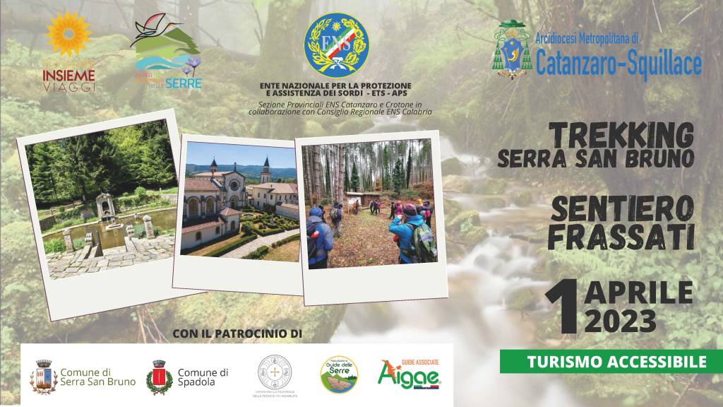 L’Arcidiocesi di Catanzaro Squillace ospiterà il 1 aprile 2023 una giornata all’insegna del turismo accessibile. Una occasione unica per vivere concretamente l’idea che le bellezze che il mondi ci offre possono essere vissute anche dai fratelli con disabilità. Il patrimonio naturalistico appartiene a tutti e a tutti dobbiamo narrarlo e mostrarlo come un vero museo. L’evento è organizzato dall’Ente Parco regionale Serre e l’Associazione Regionale Sordi, Ens regione Calabria, sezioni provinciali di Catanzaro, Crotone e gruppo Rossano in collaborazione con la Arcidiocesi di Catanzaro-Squillace. Guidati e sollecitati dalla preziosa ispirazione dell’Ufficio diocesano della Pastorale per le persone con disabilità della Arcidiocesi di Rossano-Cariati, con la collaborazione tecnica di Sognare Insieme Viaggi e Associazione Guide del Parco delle Serre, è stato pensato un evento di Trekking lungo il sentiero Frassati con la traduzione nella lingua dei segni. Se un luogo diventa accessibile a tutti e la sua visita è sempre più inclusiva, questo contribuisce a fornire un altro piccolo tassello nell’abbattimento delle barriere che le persone disabili ancora incontrano nel quotidiano. L’evento si colloca in un percorso di proposta turistica accessibile e inclusiva iniziato dall’Ente parco insieme alle Guide Ambientali Escursionistiche. L’evento è stato patrocinato dal Comune di Serra e dal Comune di Spadola, i cui sindaci hanno mostrato sensibilità e attenzione verso la promozione di un turismo inclusivo e accessibile. A conclusione della giornata, alle ore 16.00 S.E. Mons Claudio Maniago Arcivescovo Metropolita della Diocesi di Catanzaro Squillace, celebrerà la Santa Messa, con la benedizione delle Palme ed anche la Celebrazione della Santa Messa sarà tradotta anch’essa nella lingua dei segni. Il ritrovo sarà davanti la Chiesa dell’Addolorata, per la benedizione delle Palme e in processione si proseguirà per la Chiesa di San Biagio per la celebrazione eucaristica.