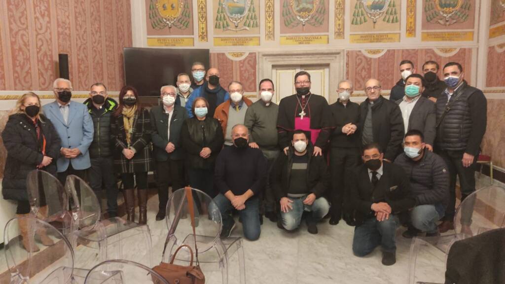 S. E. l’Arcivescovo Mons. Maurizio Aloise ha incontrato una rappresentanza delle Congreghe del territorio diocesano per la prima Assemblea Sinodale con le Confraternite. Le delegazioni, formate dai Priori, Consigli Direttivi e Assistenti Spirituali, sono state accompagnate da don Nicola Alessio Delegato per le Congreghe dell’Arcidiocesi
