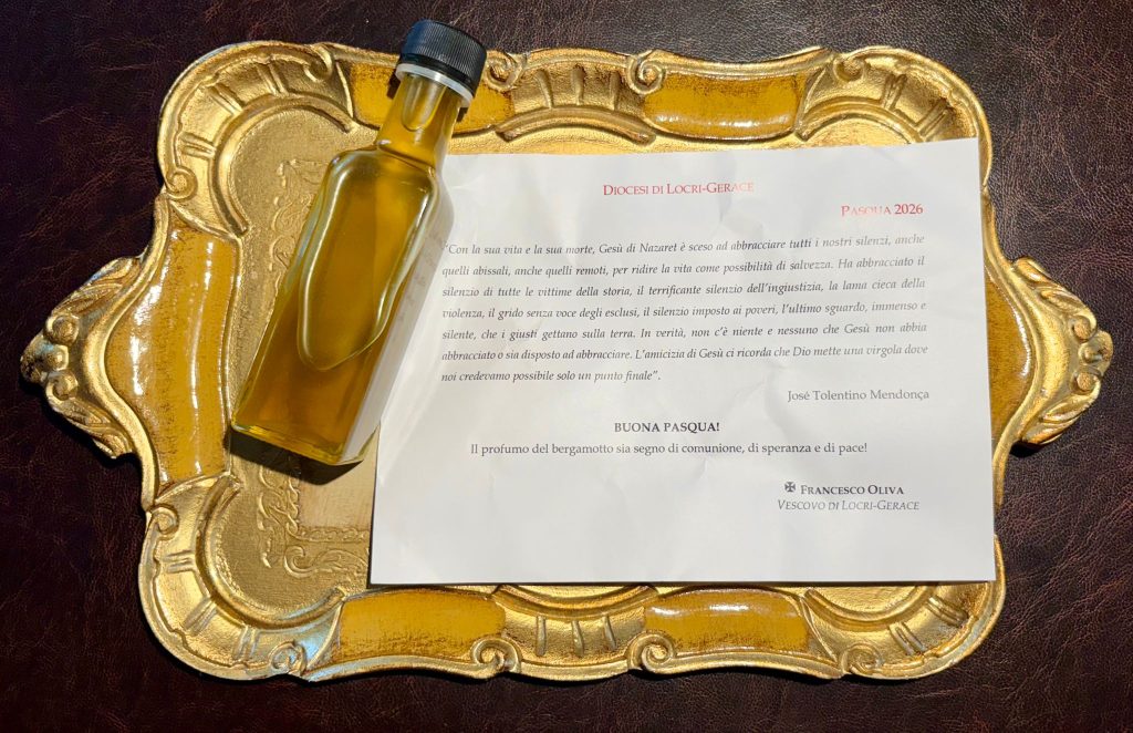 Tra queste, l’essenza di bergamotto proveniente dalla diocesi di Locri-Gerace assume un valore particolarmente significativo: il suo profumo richiama la ricchezza e la bellezza del territorio calabrese e diventa simbolo di comunione tra le Chiese, oltre che di speranza e di pace.