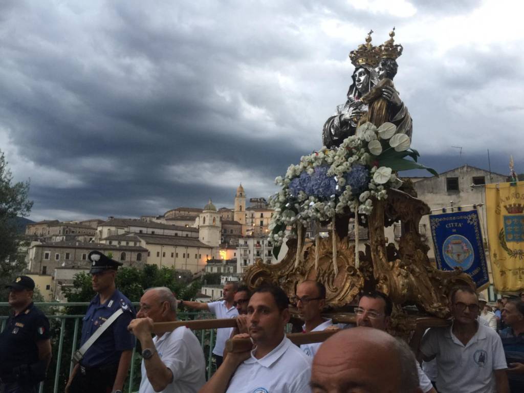 Questo è il primo anno che facciamo festa come Comune unico, con la prima Giunta amministrativa, democraticamente eletta, che saluto insieme a tutte le istituzioni civili e militari presenti. Poniamo tutti loro sotto la protezione della Vergine Santa perché il loro servizio possa essere portatore di bene e costruttore di un futuro migliore per le nostre realtà civiche.