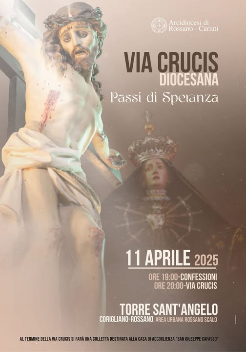 Camminare InsiemeOggi la Via Crucis Diocesana11 Aprile 202511 Aprile 2025 Oggi 11 aprile Via Crucis Diocesana. Ci ritroveremo nel piazzale della Torre S. Angelo a Rossano Alle ore 19:00 confessioni Alle ore 20:00 Via Crucis Presiede S. E. l’Arcivescovo Mons. Maurizio Aloise condividi su #arcidicoesi rossano cariati#vescovoaloise