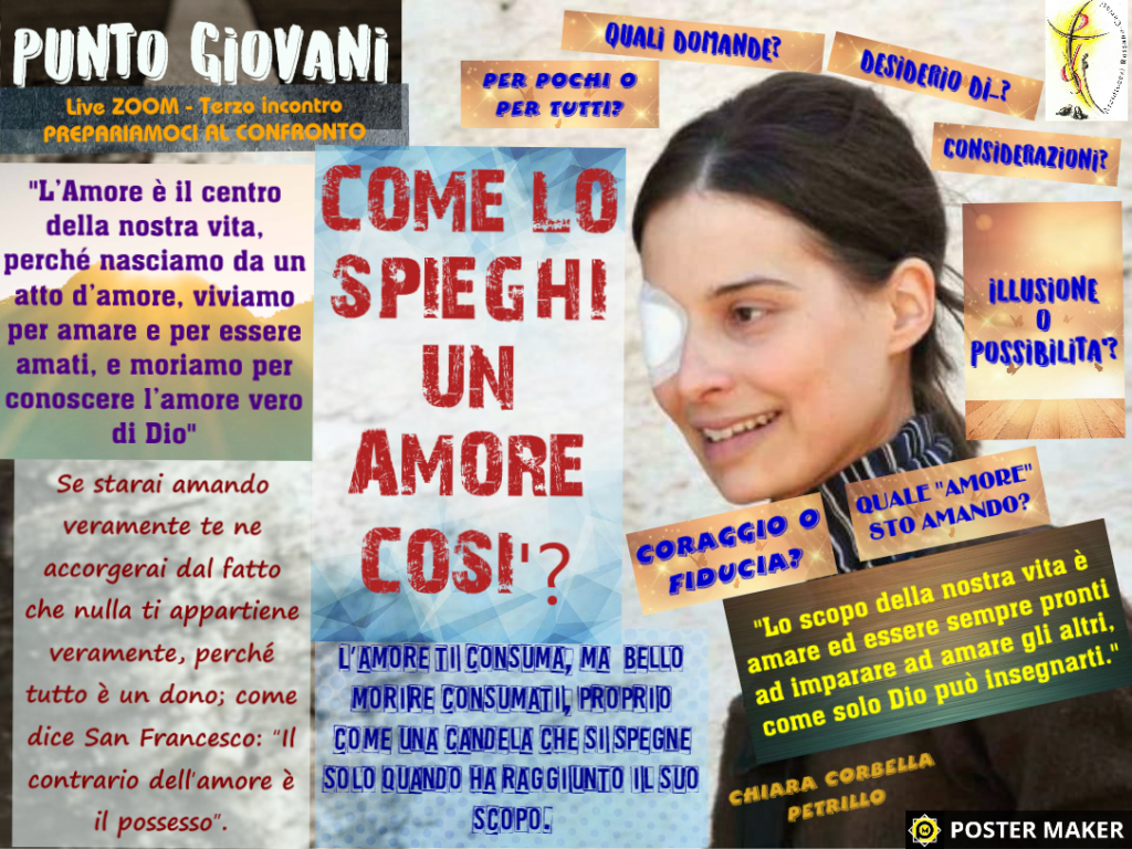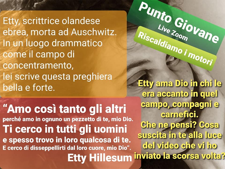 Servizio di Pastorale Giovanile e Ufficio di Pastorale delle VocazioniPUNTO GIOVANI25 Maggio 202027 Gennaio 2023 Durante questo tempo di pandemia il “Punto Giovani” si presenta come occasione preziosa per incontrare i giovani della Diocesi. Questi momenti di confronto sono arricchiti dalla presenza dell’Arcivescovo e di vari ospiti! condividi su