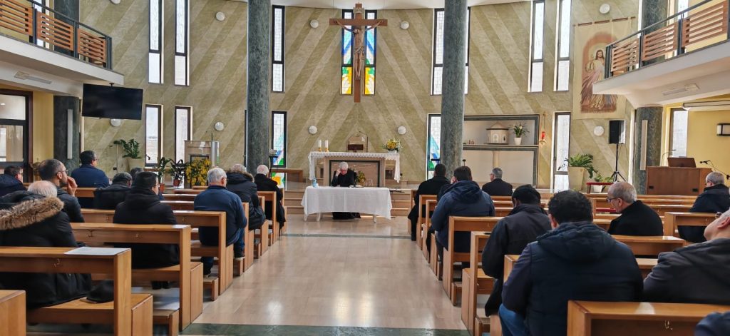 Nella mattinata di giovedì 13 febbraio 2025, presso la parrocchia di Santa Teresa di Gesù Bambino, Area Urbana Rossano Scalo, sì è svolto il ritiro dei sacerdoti. Dopo la preghiera dell’Ora Terza, l’Arcivescovo ha salutato tutti e ha ringraziato Padre Luca Fallica, Abate di Montecassino, il quale ha tenuto una meditazione sul tema: “Pellegrini per lasciare tracce di speranza…”.